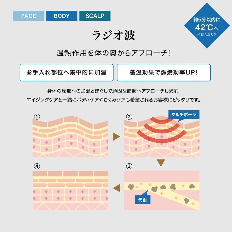 这款设备集射频(RF)、超声波、EMS于一体,专为“精准燃脂+深层紧致+体液代谢”打造。与市面常见的ハイパーナイフ相比,能量穿透力更强,热感更深层,在不增加疼痛的前提下,更有效溶解脂肪、紧致松弛皮肤,同时改善浮肿与代谢,是目前日本高端美容沙龙间热度极高的新一代瘦身解决方案。